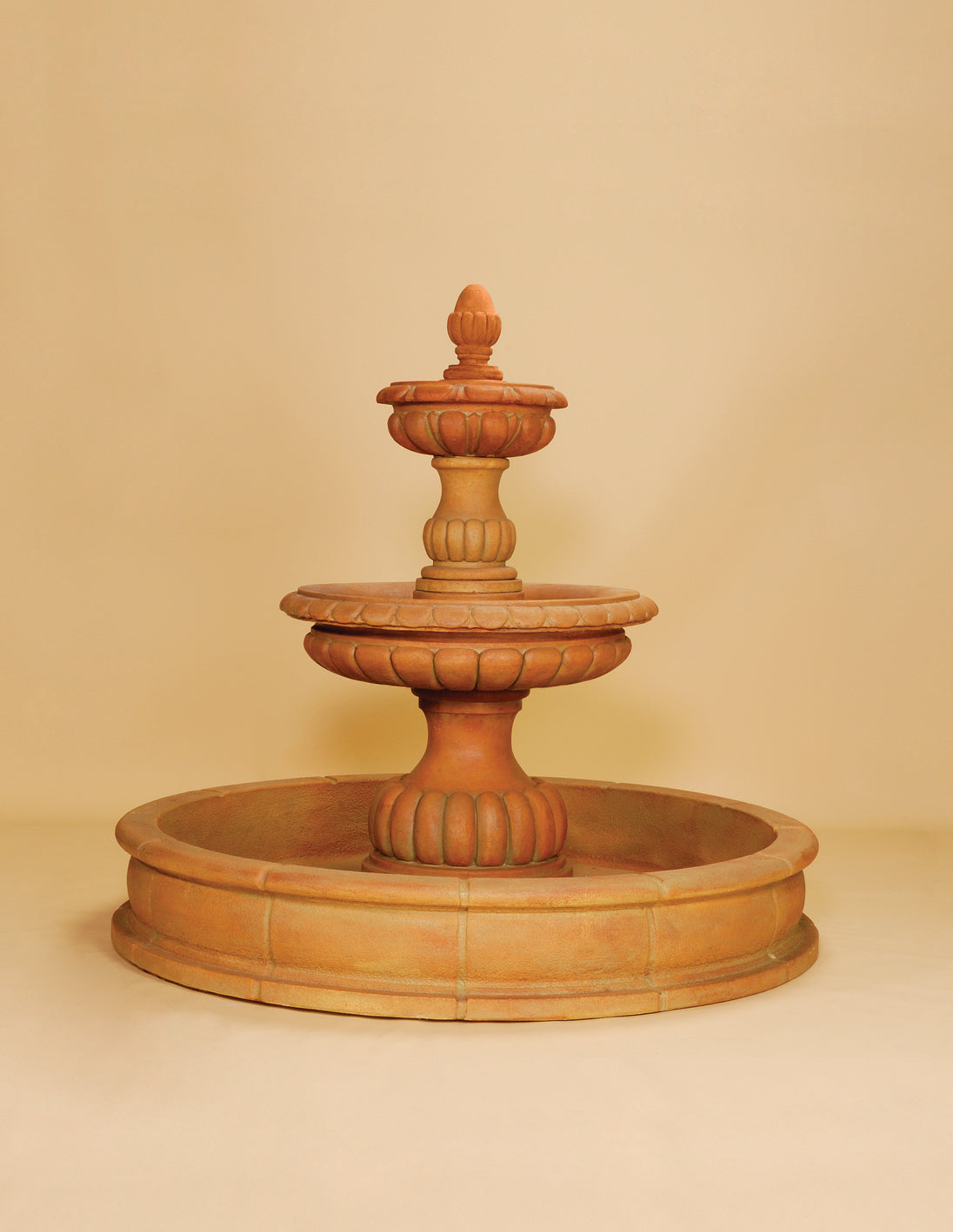 Bring refined elegance to your landscape with the Ambra Two Tier Pond Fountain by Giannini Garden. Featuring two classic fluted bowls and a broad integrated basin, this design delivers a graceful cascade of water that creates a timeless focal point for gardens, courtyards, or entryways.