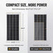 Solar Panels (2×200W): 23% efficiency | 58.5 × 27.8 × 1.4 in | 24 lbs each | 10-year product warranty, 25-year performance warranty