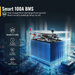 Bluetooth-enabled with LCD screen and mobile app monitoring. Features lithium activation, low-temp protection, and 99.5% tracking efficiency for optimized battery performance.