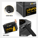 LiFePO4 Batteries (2×100Ah): 1280Wh each | 4000+ cycles | 27 lbs each | Expandable up to 16 units | 12-year warranty