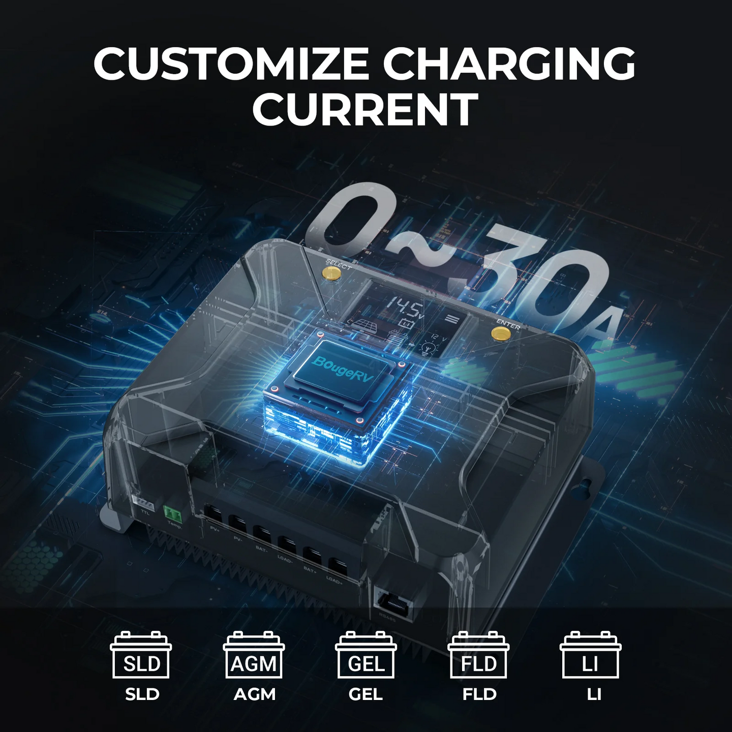 MPPT Controller: 30A | 12V/24V | Bluetooth & LCD | -31°F to 149°F operating range | 18-month warranty