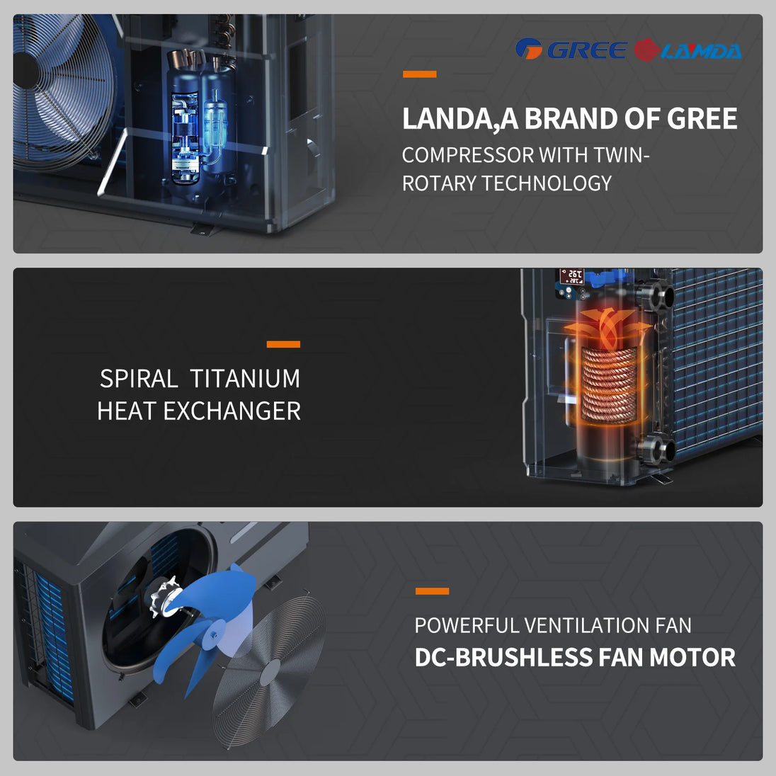 90,000 BTU Heating Capacity – Recommended for in-ground or above-ground pools up to 22,000 gallons