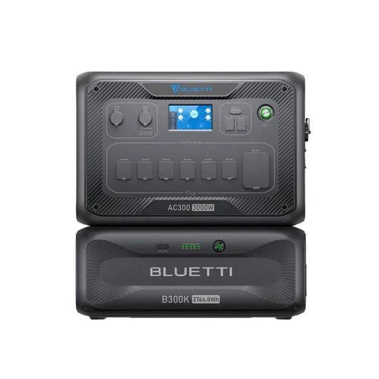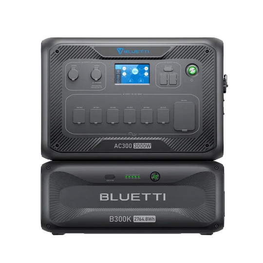 Sale               Vendor: Bluetti BLUETTI AC300 + B300K Home Battery Backup – 3,000W Inverter, 2,764Wh LiFePO₄ No reviewsThe BLUETTI AC300 + B300K Home Battery Backup is a modular, expandable energy storage solution built for whole-home backup, off-grid power, and renewable energy integration. Featuring a 3,000W pure sine wave inverter (6,000W surge) and a...Sale price From $2,299.00Regular price $2,499.00Sale price From $2,299.00Regular price $2,499.00