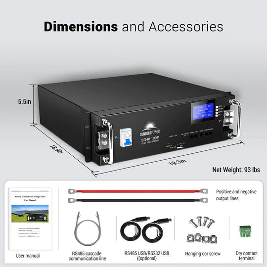 Vendor: SunGold Power SunGold Power 48V 100Ah Server Rack LiFePO₄ Lithium Battery – 5.12kWh The SunGold Power SG48100P 48V 100Ah Server Rack Battery is a reliable 5.12kWh LiFePO₄ storage module designed for residential, small commercial, and industrial energy storage systems. Its modular rack-mount design allows easy installation and parallel expansion...Regular price $1,150.00Regular price $1,150.00