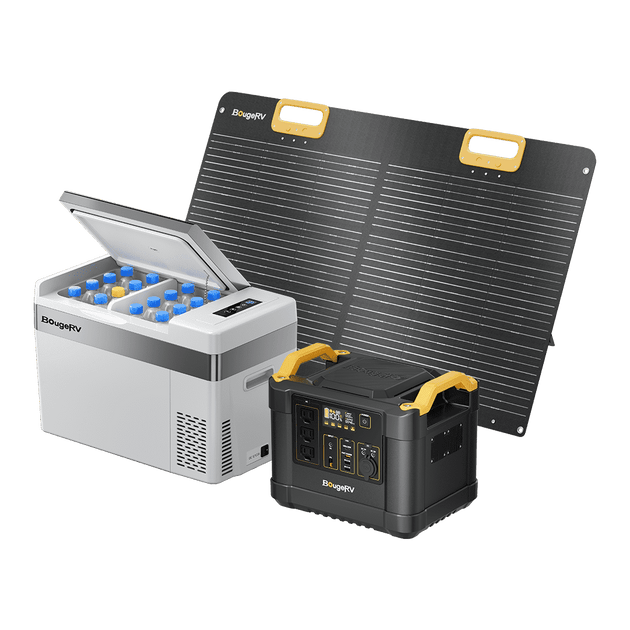 BougeRV 1120Wh LiFePO4 Solar Generator with 30QT Portable Fridge & 100W Solar Panel