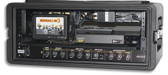 The EPIC PRO ShowCase™ A/V Console is a professional-grade, all-in-one solution for Blu-ray playback and event audio control. Compact yet powerful, this console is built tough in a rotomolded rack case and sized like carry-on luggage — making it easy to transport while delivering dependable performance.