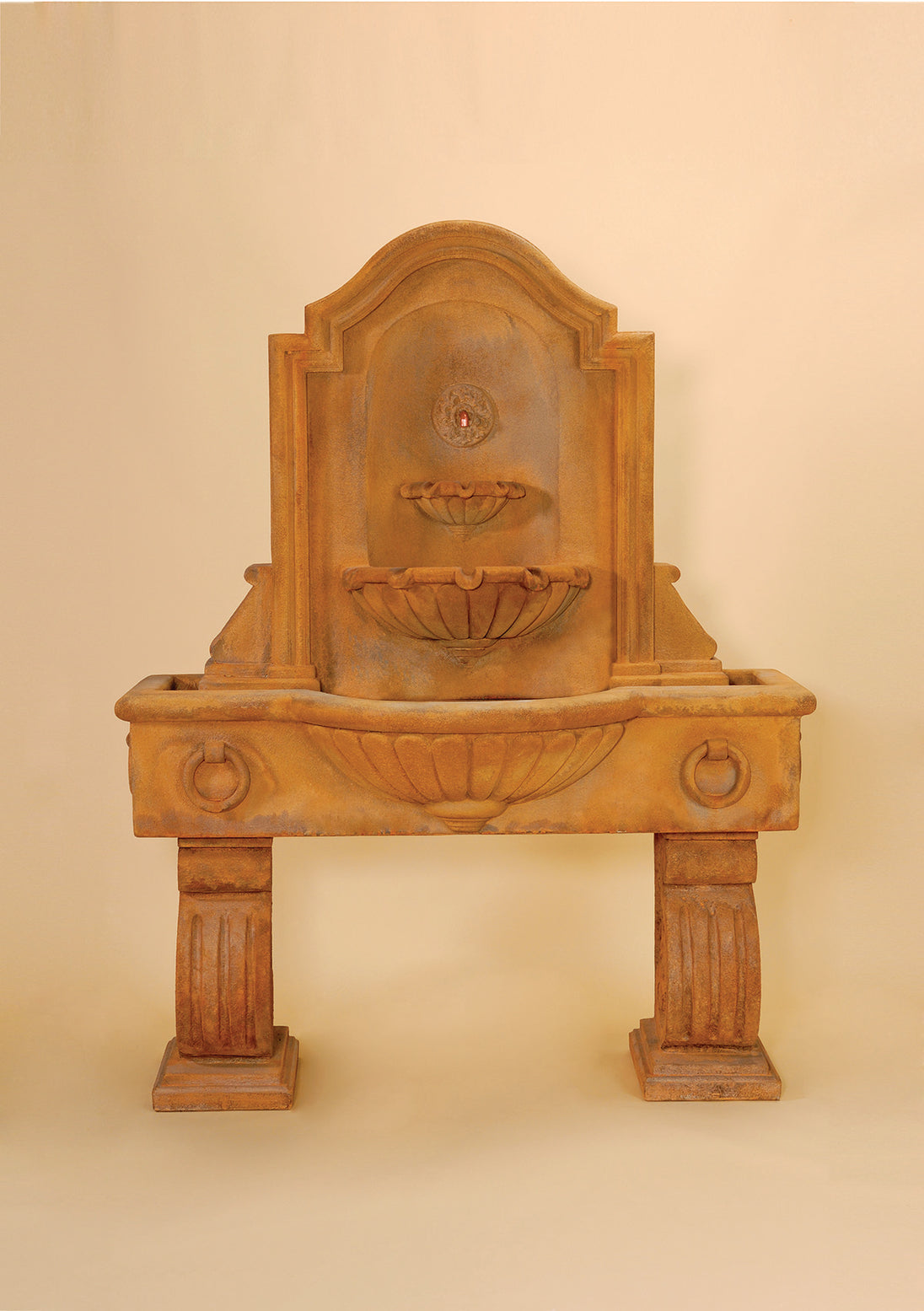 Bring classic European elegance to your courtyard or garden with the Anduze Tall Wall Fountain by Giannini Garden. Featuring a tall, architectural backplate with sculpted tiered bowls and decorative detailing, this freestanding design offers a dramatic focal point with the gentle sound of cascading water.