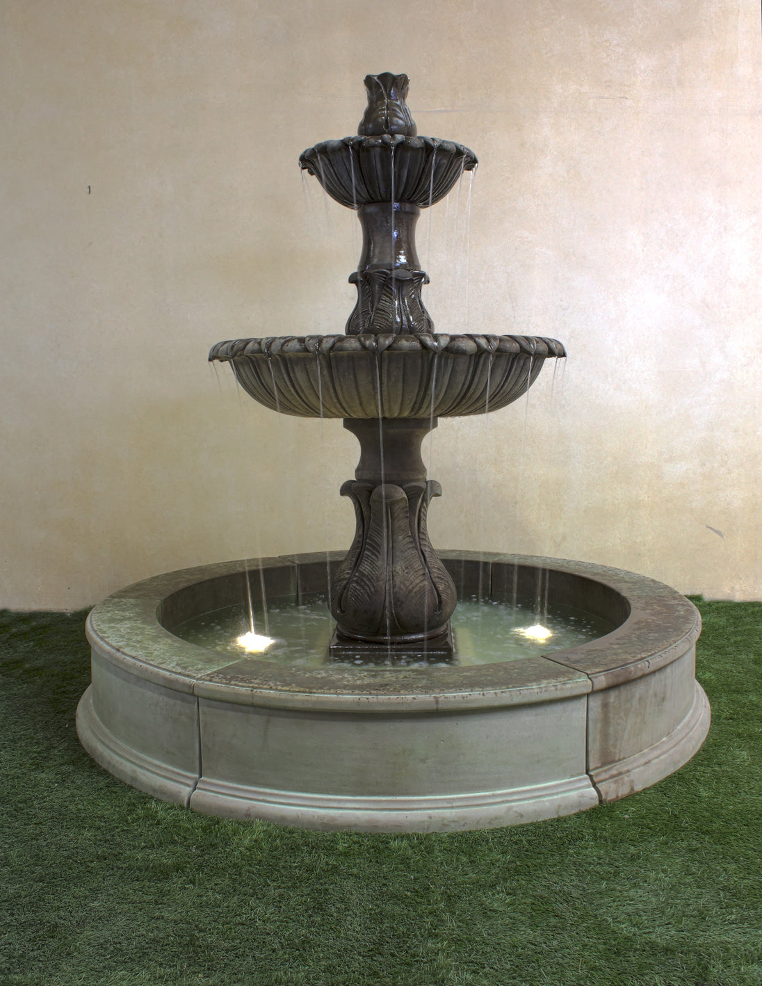 Bring timeless sophistication to your outdoor space with the Calanthia Two Tier Fountain featuring an elegant acanthus finial. This stunning cast-stone fountain is designed with richly detailed scalloped bowls and classic acanthus leaf accents, delivering graceful old-world charm to gardens, courtyards, and patios. The beautifully tiered design ensures a soothing, layered water flow that enhances any traditional or Mediterranean landscape.