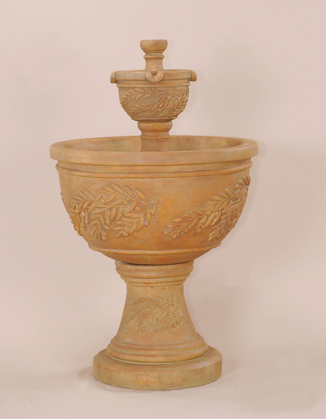 Celebrate classic Mediterranean style and artisan detailing with the Oliva Two Tier Fountain by Giannini Garden. Featuring two beautifully rounded tiers adorned with intricately sculpted olive branch garlands, this design brings authentic old-world charm and the soothing sound of flowing water to your outdoor space. Handcrafted from durable cast stone, it's the perfect focal point for courtyards, patios, gardens, or entryways looking to capture timeless Italian elegance.