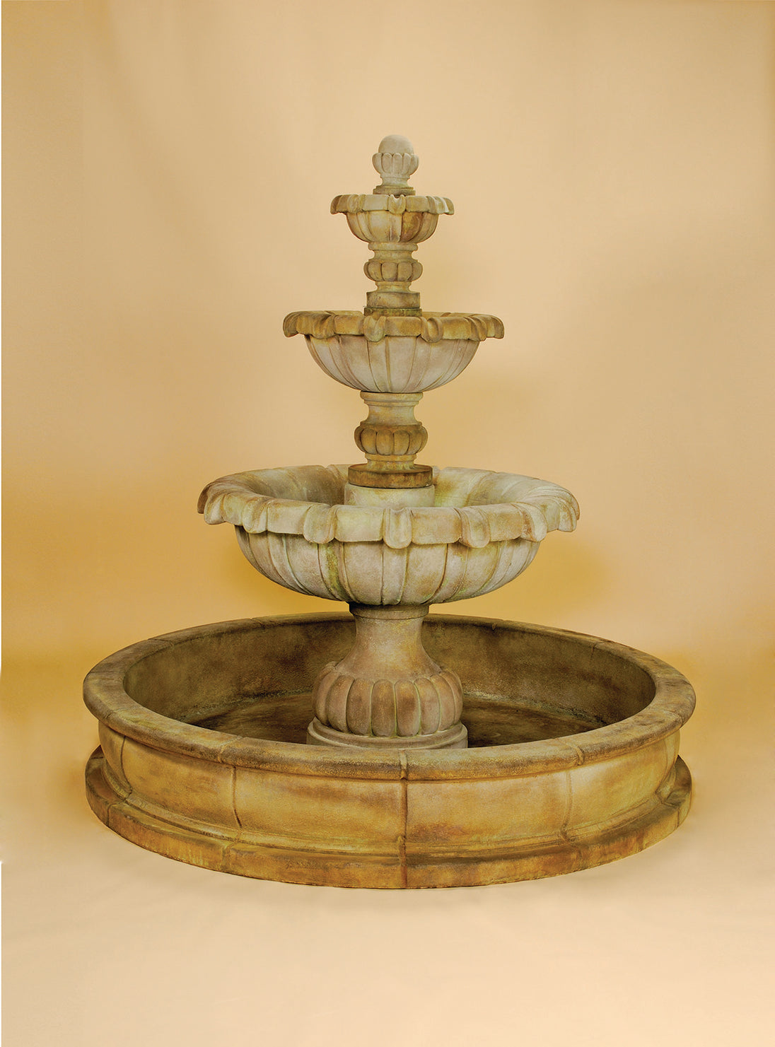 Make a dramatic statement in your landscape with the Vistamar Three Tier Pond Fountain by Giannini Garden. Featuring three beautifully sculpted bowls with classic fluted detailing and a wide integrated basin, this design delivers a graceful cascade of water for an impressive, timeless focal point in gardens, courtyards, or entryways.