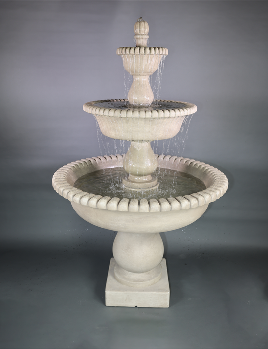 Vendor: Giannini Garden Giannini Garden Malibu Three Tier Fountain No reviewsBring timeless elegance to your outdoor living space with the Malibu Three Tier Fountain by Giannini Garden. This classic design features three beautifully sculpted tiers with distinctive beaded edges, creating a graceful cascade of water that's...Regular price $3,224.55Regular price $3,224.55