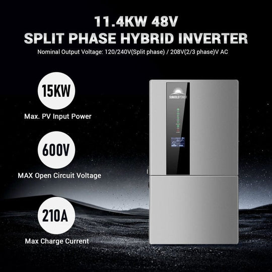 The SunGold Power 11.4kW 48V Split Phase Hybrid Inverter is a multi-function power solution that combines solar inverter, battery storage, and grid-tie capability. With 15kW solar PV input, 10kW continuous AC output (max 11.4kW), and intelligent...Sale price $2,850.00Regular price $3,350.00Sale price $2,850.00Regular price $3,350.00 -