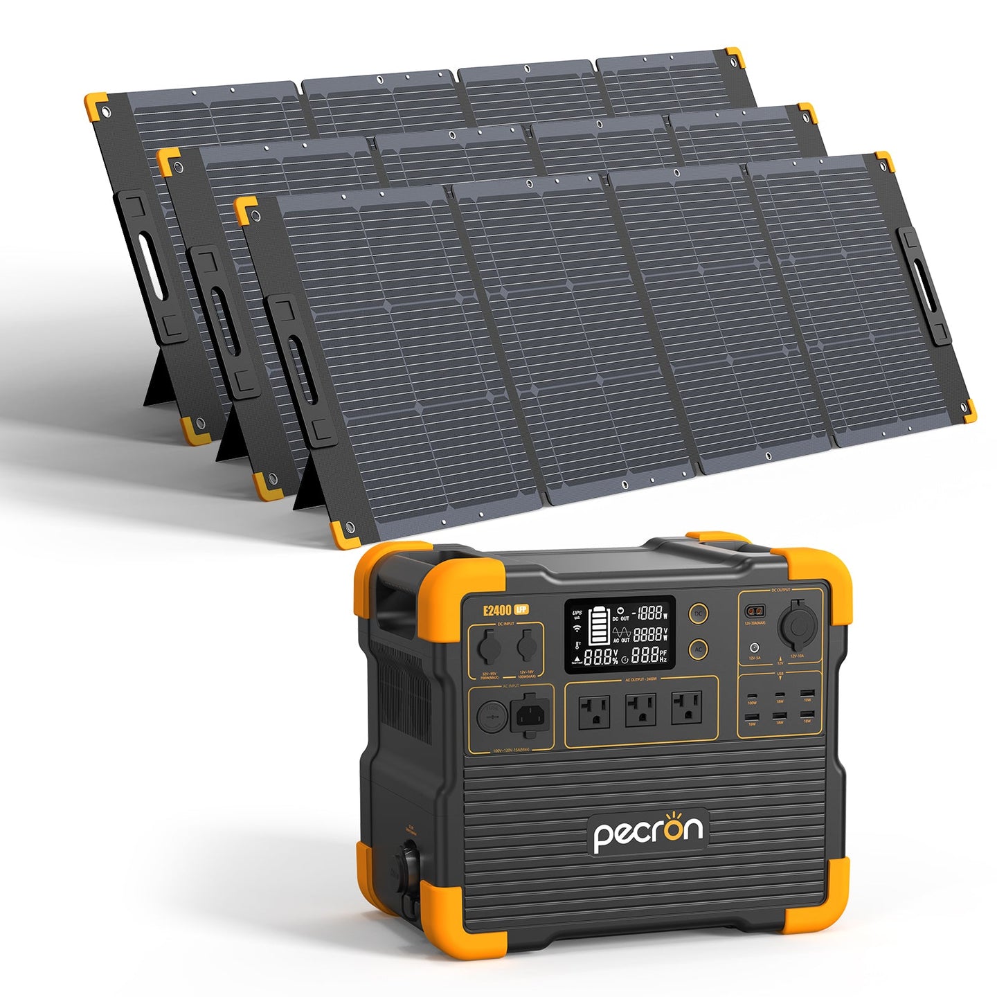 Powerful, expandable, and ready for any challenge — the PECRON E2400LFP Solar Generator Kit delivers 2400W continuous AC output (4000W surge) from a 2048Wh LiFePO4 battery with 3,500+ cycles to 80% capacity. Designed for home backup, RVs, camping, off-grid living, and job sites, this power station combines ultra-fast charging, flexible expandability, and smart controls in a portable package.