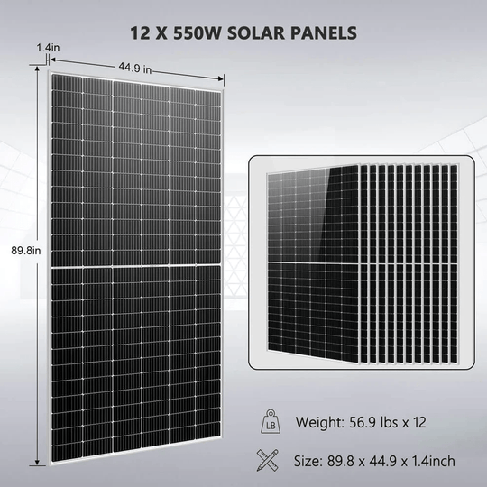 No reviewsThe SunGold Power SGR-10K25S Off-Grid Solar Kit provides a complete energy solution with a 10kW 48V split-phase inverter, 12 × 550W monocrystalline solar panels (6.6kW total), and a 25.6kWh LiFePO4 battery bank (5 × 5.12kWh modules) installed...Regular price $10,878.00Regular price $10,878.00
