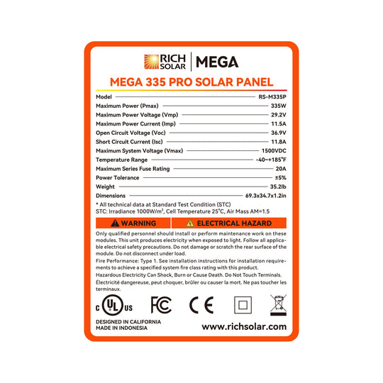 Rich Solar MEGA 335 PRO | 335W 24V Solar Panel for Residential, Commercial, Agriculture | Grid-Tie & Off-Grid | 25-Year Output Warranty