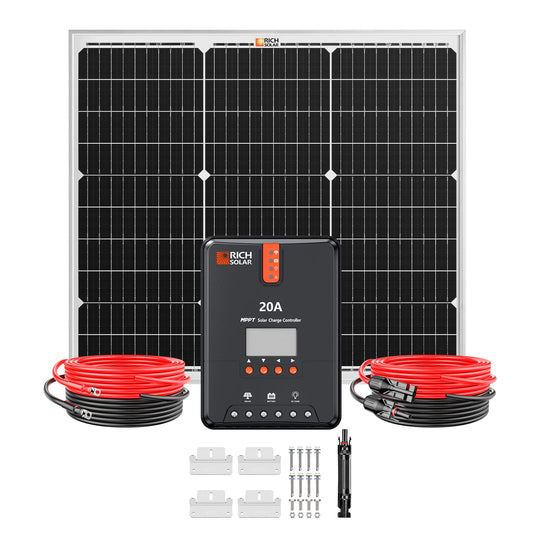 Rich Solar 50 Watt Off-Grid DIY Solar Kit with 20A MPPT Charge Controller, Wires, and Mounting Brackets