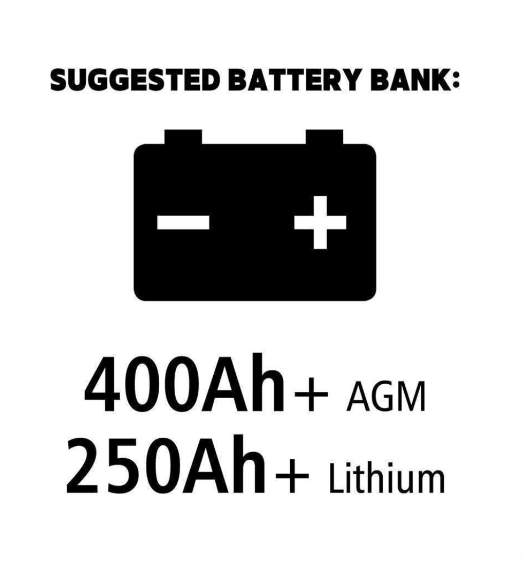 – Battery compatibility – Best paired with 400Ah+ AGM or 250Ah+ lithium batteries for optimal performance.
