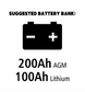 – Flexible battery compatibility – Best paired with 200Ah AGM or 100Ah lithium battery banks for optimal performance.