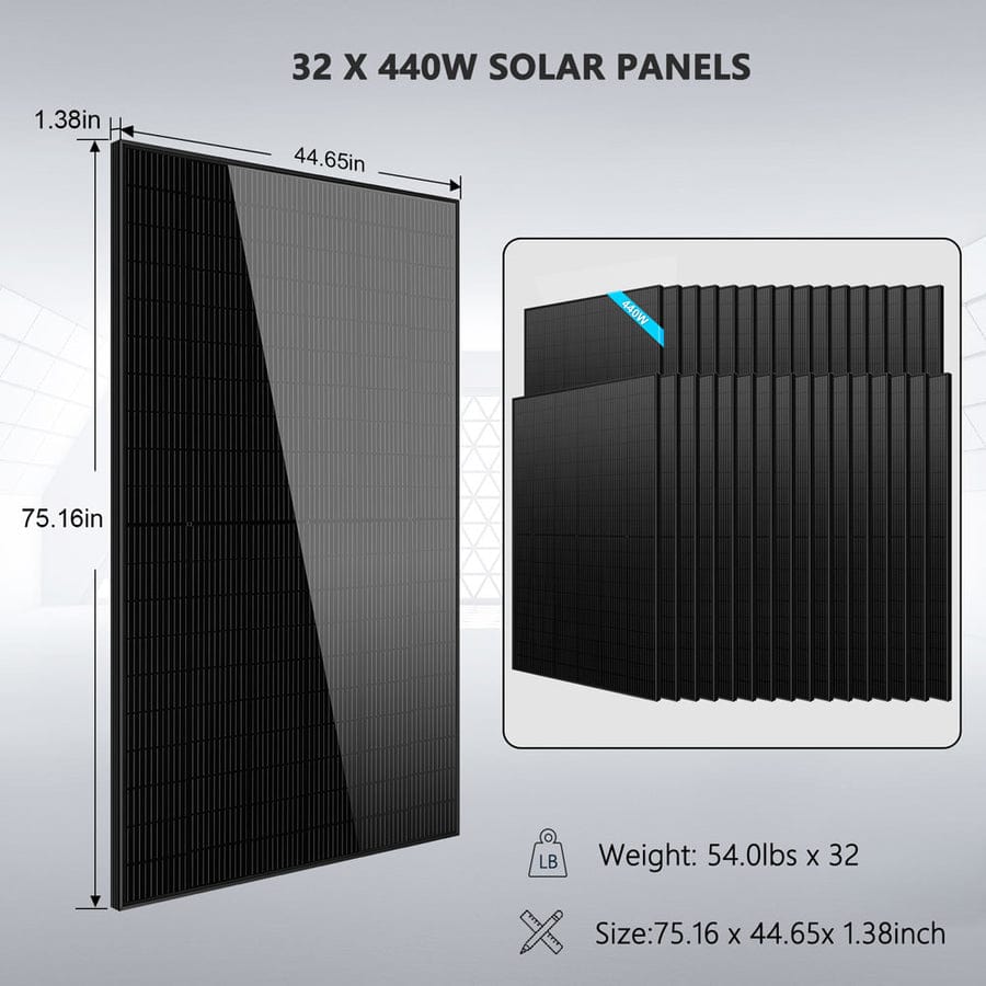High-Yield Solar Array – 32 × 440W panels = 14.08kW of solar capacity