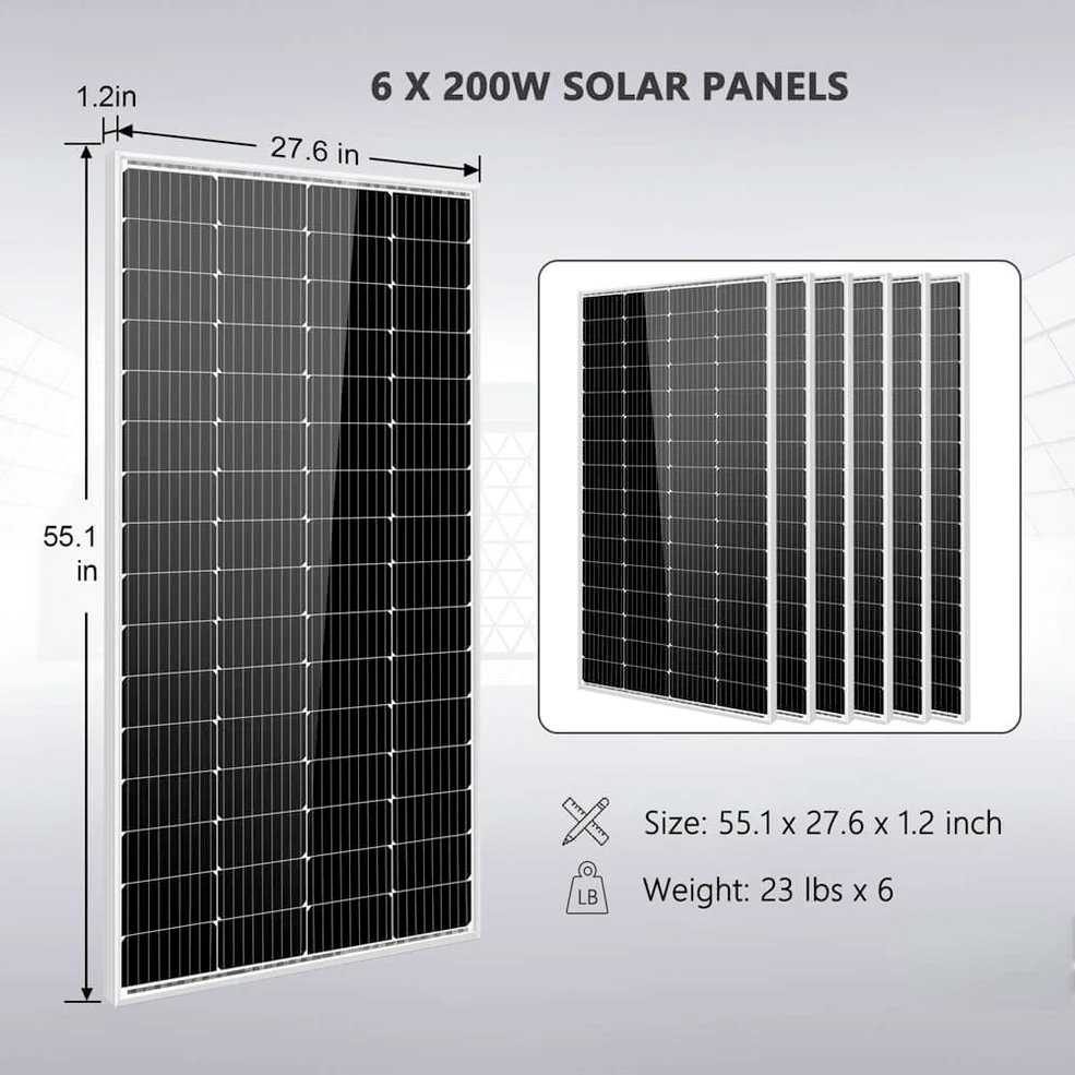 High-Quality Solar Panels – 6 × 200W monocrystalline panels designed for strong performance in diverse conditions.