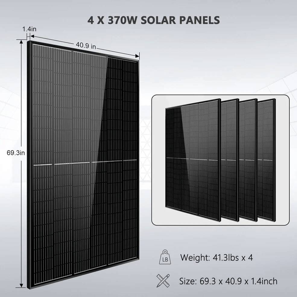 Efficient Solar Panels – 4 × 370W monocrystalline panels deliver strong energy conversion in diverse weather conditions.