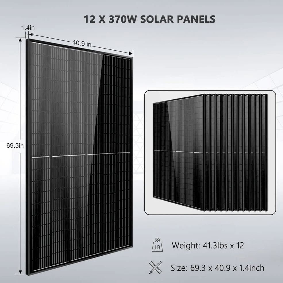 Solar Input: 12 × 370W monocrystalline panels (4.44kW total)