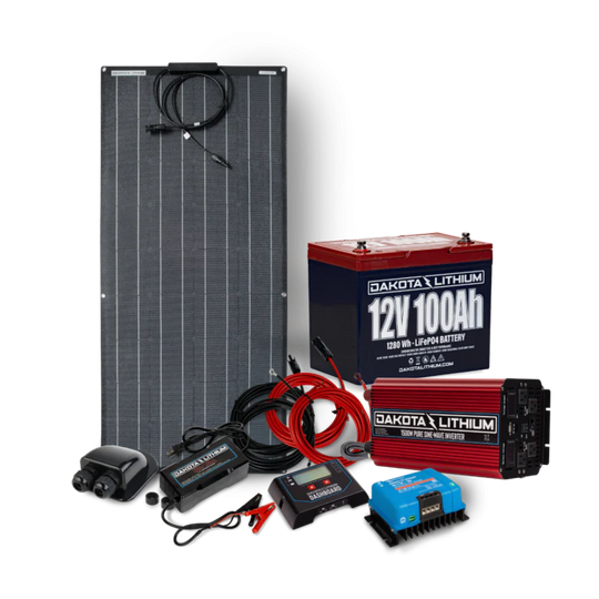 Sold out          Vendor: Dakota Lithium Dakota Lithium 12V 100Ah Off-Grid Solar Power System No reviewsPower your adventures with the Dakota Lithium 12V 100Ah Off-Grid Solar Power System, a complete plug-and-play energy solution designed for camper vans, RVs, trailers, small boats, and off-grid living. Built with Dakota’s industry-leading Lithium Iron Phosphate...Regular price $1,699.00Regular price $1,699.00