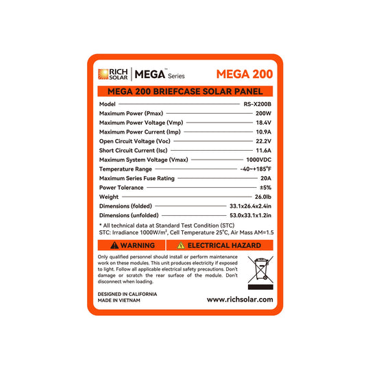 No reviewsThe Rich Solar MEGA 200 Portable Briefcase Solar Panel is a powerful, easy-to-use portable solar solution for off-grid living, camping, RVs, boating, and emergency backup. Designed with high-efficiency monocrystalline cells, it delivers reliable renewable power anywhere...Sale price $319.99Regular price $399.99Sale price $319.99Regular price $399.99 -