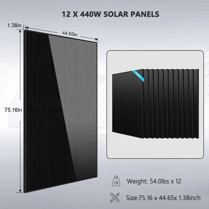 12 × 450W monocrystalline solar panels (5400W total)