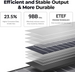 High efficiency (23%) – 9BB solar cells provide faster charging and better performance in limited sunlight.