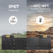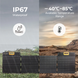• Solar Panel: 200W | 23% efficiency | IP67 waterproof | Folded 21.9 × 25.5 in | 18 lbs
